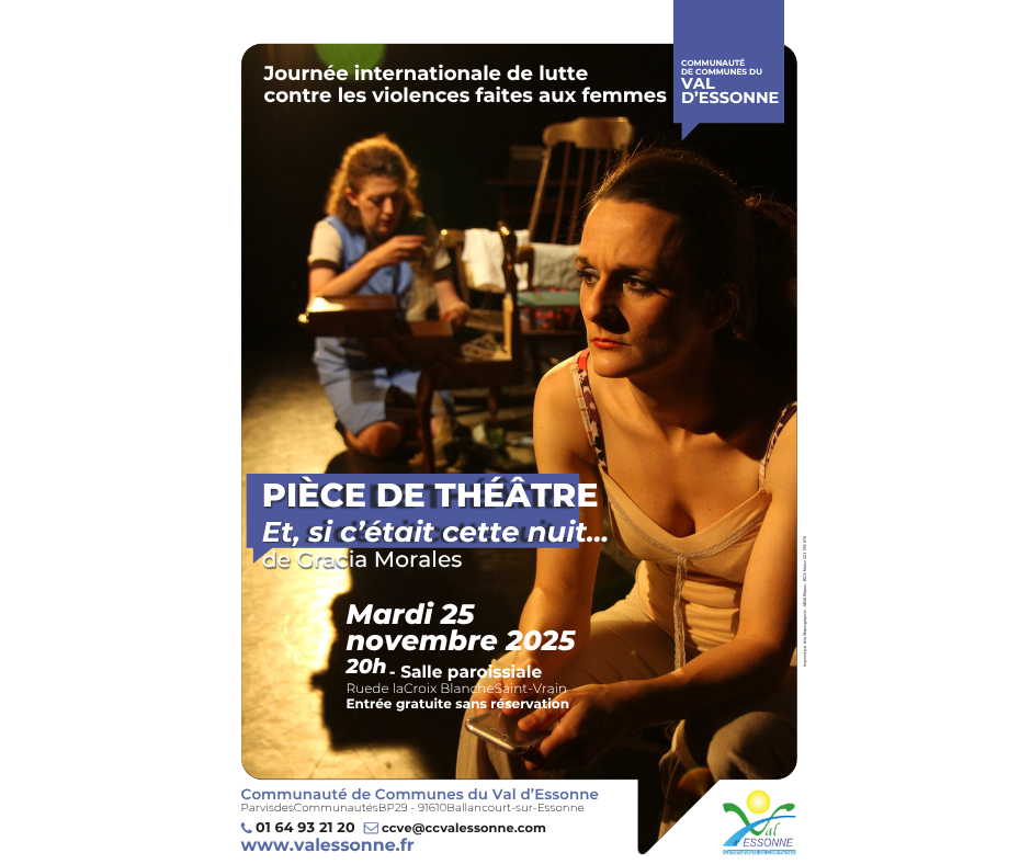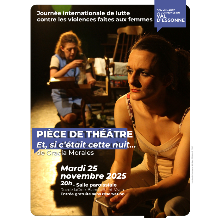 Sur proposition de 𝐌𝐚𝐝𝐚𝐦𝐞 𝐂𝐨𝐫𝐢𝐧𝐧𝐞 𝐂𝐨𝐫𝐝𝐢𝐞𝐫, Maire de Saint-Vrain et 𝐕𝐢𝐜𝐞-𝐏𝐫𝐞́𝐬𝐢𝐝𝐞𝐧𝐭𝐞 𝐝𝐞 𝐥𝐚 𝐂𝐂𝐕𝐄 en charge de la promotion de l’égalité et de l’accès aux droits, et de 𝐌𝐚𝐝𝐚𝐦𝐞 𝐕𝐞́𝐫𝐨𝐧𝐢𝐪𝐮𝐞 𝐃𝐨𝐫𝐞-𝐑𝐞𝐧𝐨𝐮𝐬𝐭, conseillère municipale de Saint-Vrain, déléguée à l’égalité femme/homme et à la lutte contre les discriminations, venez découvrir la représentation engagée et bouleversante de 𝐆𝐫𝐚𝐜𝐢𝐚 𝐌𝐨𝐫𝐚𝐥𝐞𝐬.