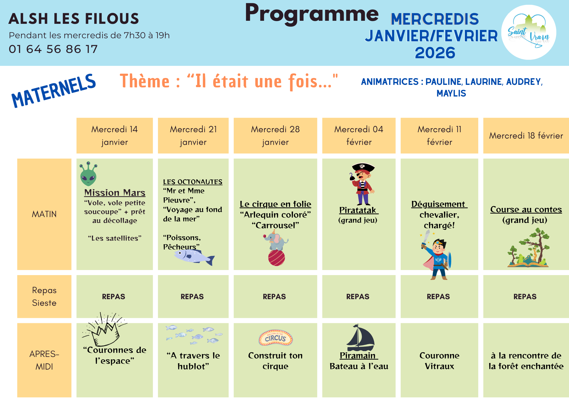 Les FILOUS, c’est le nom que porte l'Accueil de Loisirs Sans Hébergement de Saint-Vrain situé à la sortie du village, donnant sur une plaine verdoyante, aux abords d’une forêt magnifique et d’un stade municipal attrayant.