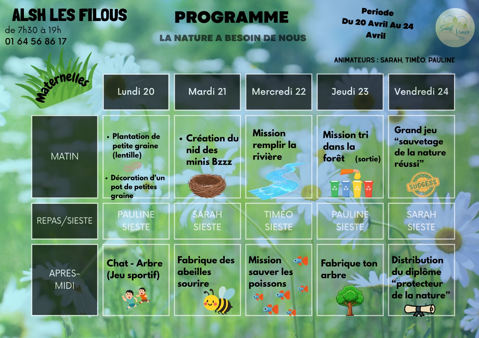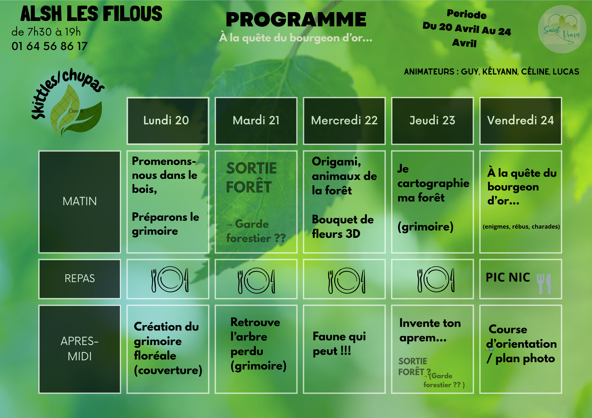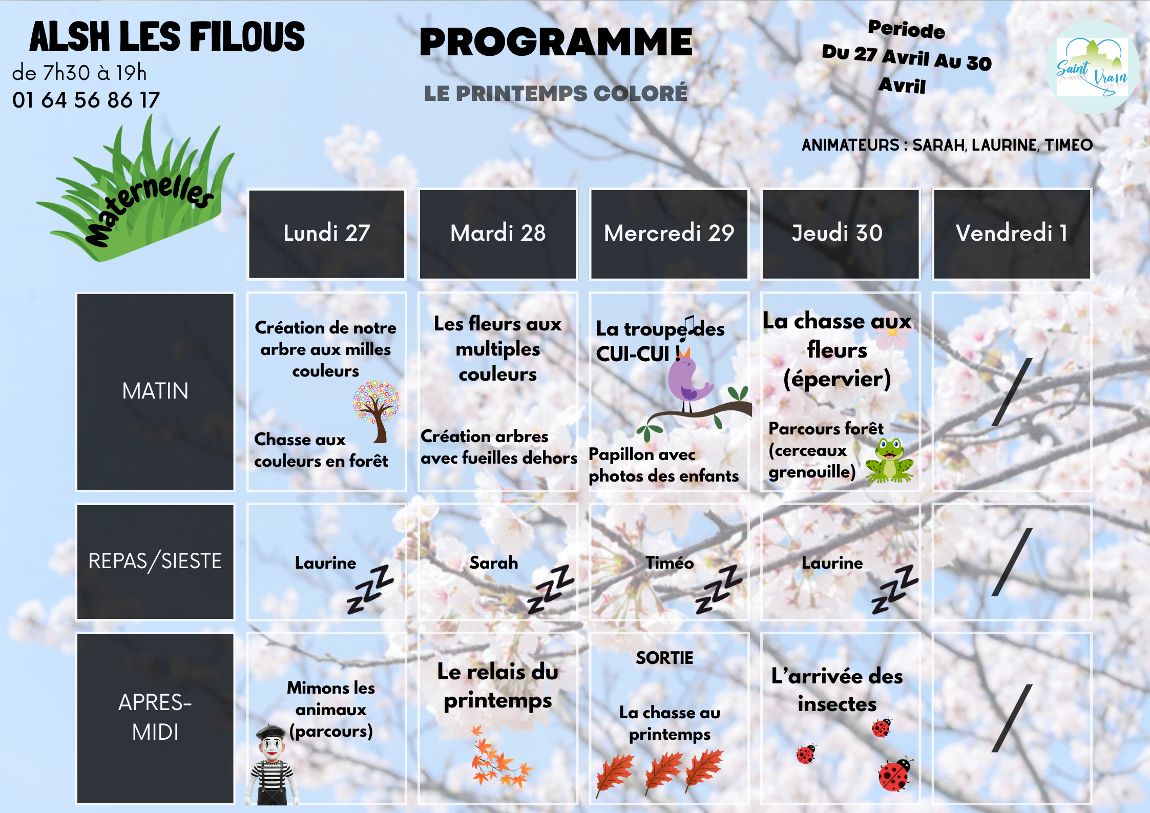 Les FILOUS, c’est le nom que porte l'Accueil de Loisirs Sans Hébergement de Saint-Vrain situé à la sortie du village, donnant sur une plaine verdoyante, aux abords d’une forêt magnifique et d’un stade municipal attrayant.